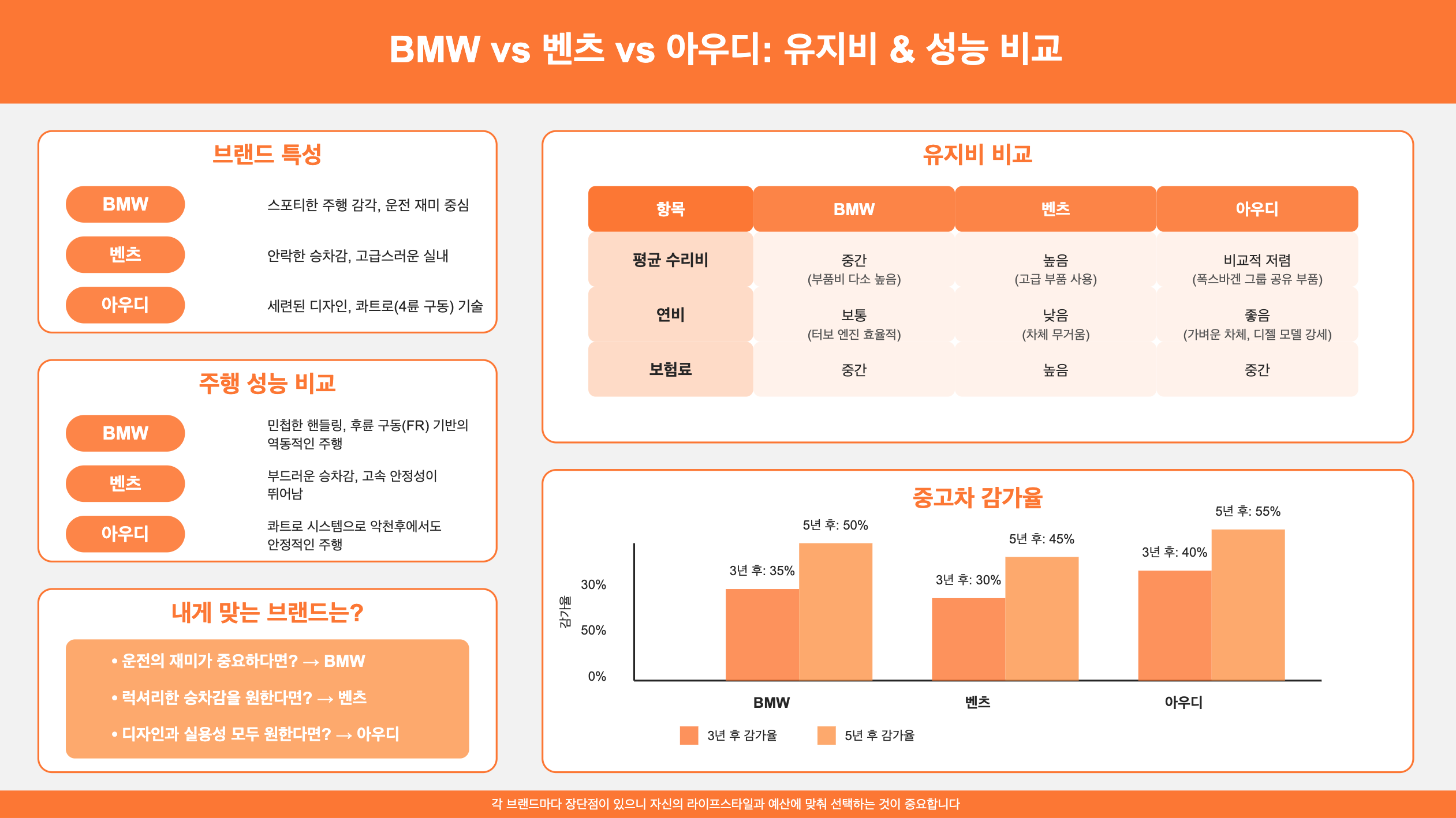 자동차 브랜드별 유지비 & 성능 비교 (BMW, 벤츠, 아우디)