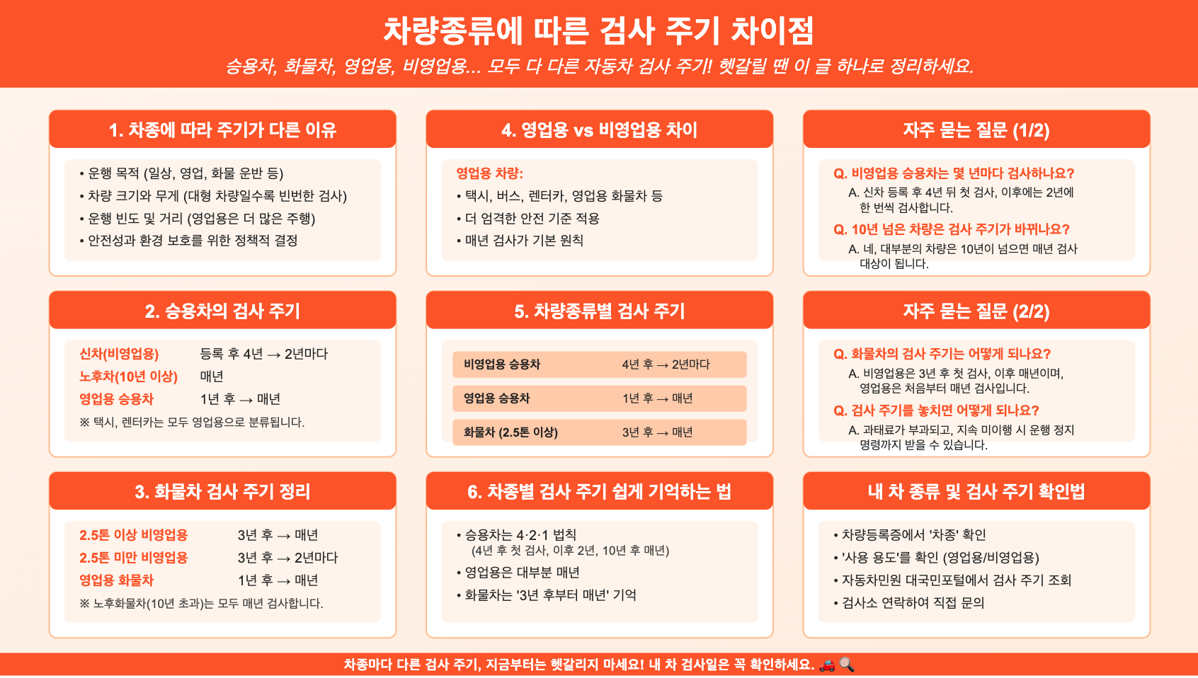승용차, 화물차, 영업용, 비영업용... 모두 다 다른 자동차 검사 주기! 헷갈릴 땐 이 글 하나로 정리하세요.
