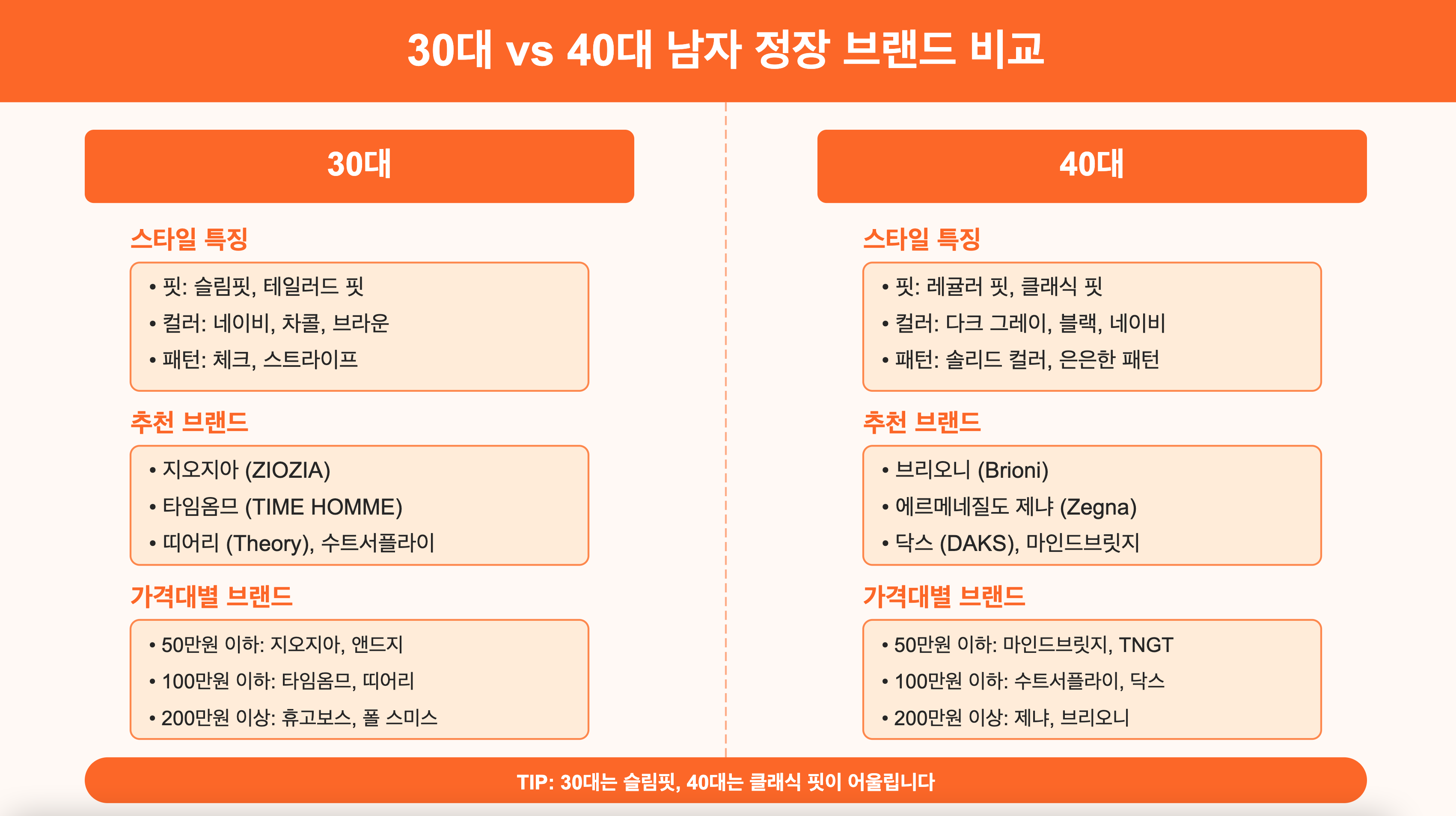 30대 vs 40대 남자 정장 브랜드 비교: 연령대별 추천 브랜드는?
