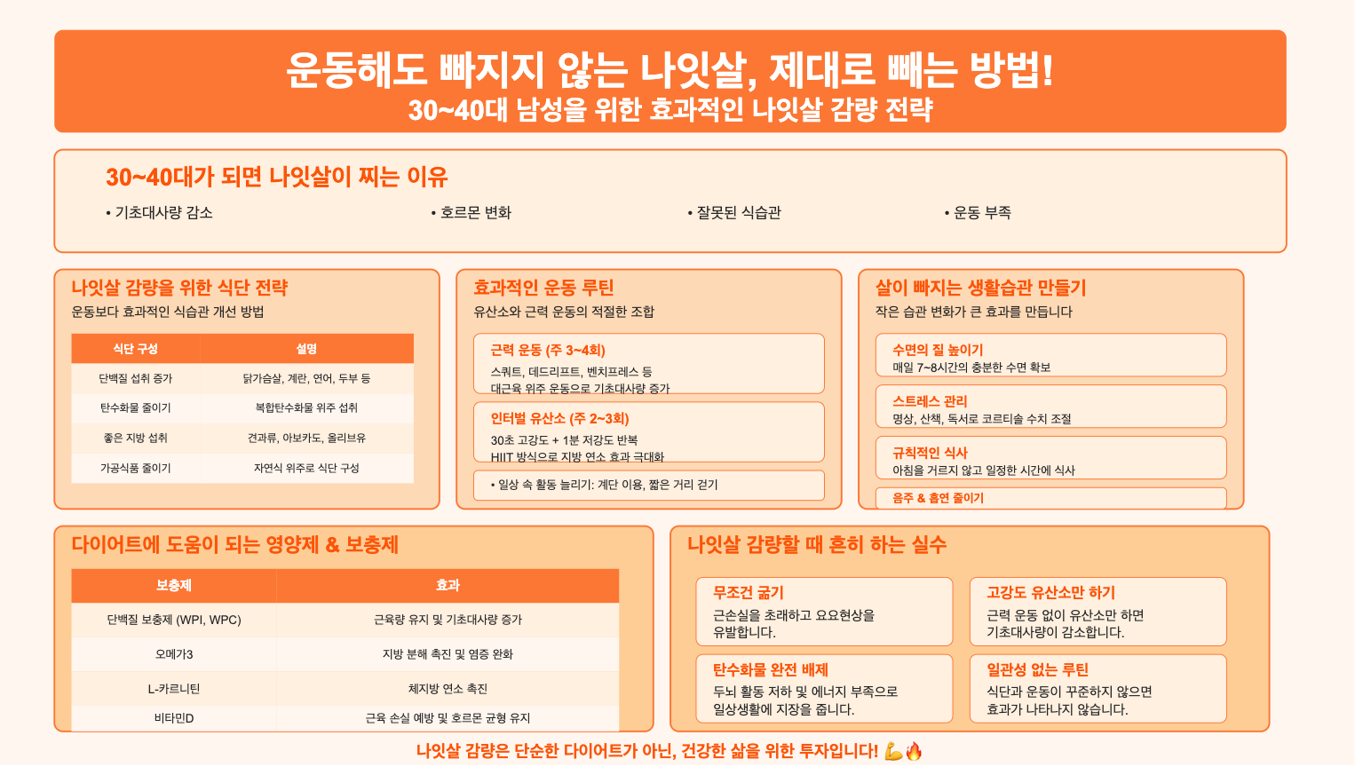 여러분은 나잇살 감량을 위해 어떤 방법을 실천하고 계신가요? 효과적인 팁이 있다면 댓글로 공유해 주세요! 💪🔥