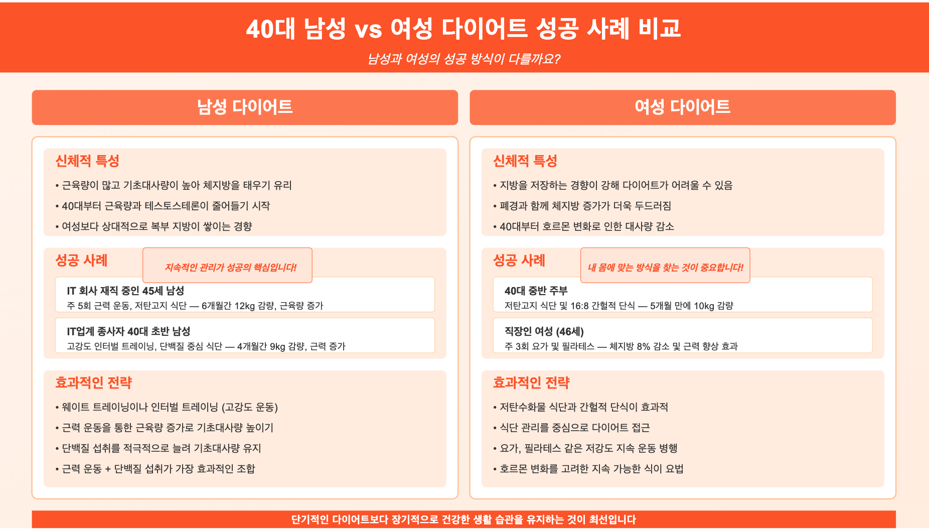 40대 남성 vs 여성 다이어트 성공 사례 비교