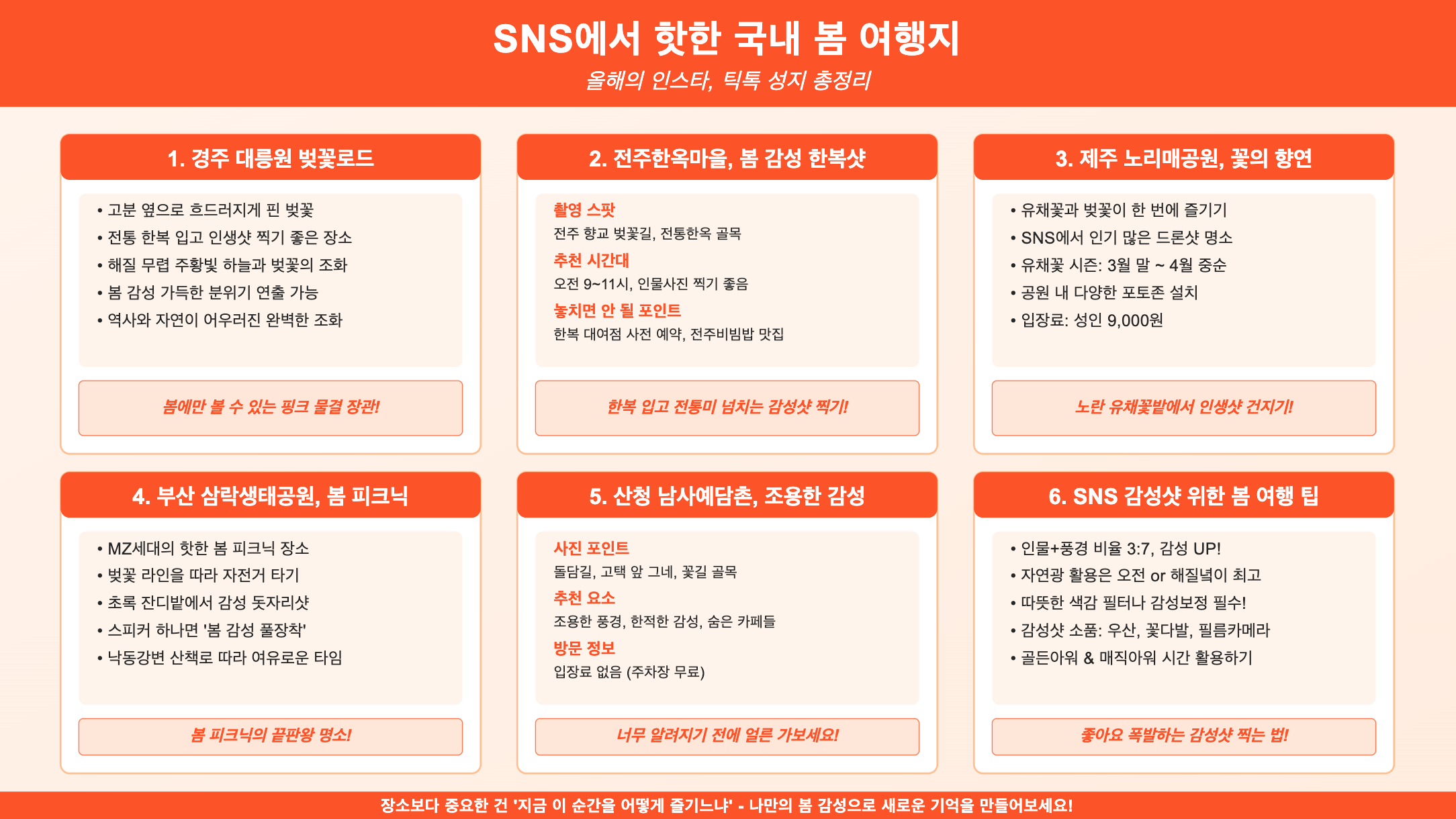 인스타, 틱톡에서 난리 난 그 봄 명소들, 정작 나는 안 가봤다고? 이 글 하나면 올해 봄 여행지도 찜 완료!
